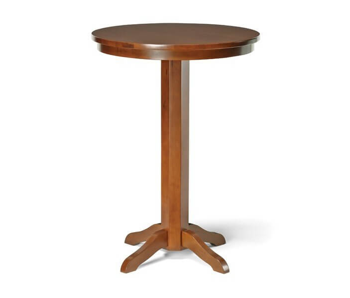 With timeless style and comfort, the Traditional Pub Table completes any game room setting. This table features a 30″ round top with a smooth finish, a 42″ height, and an eclectic prism shaped solid wood pedestal and base.