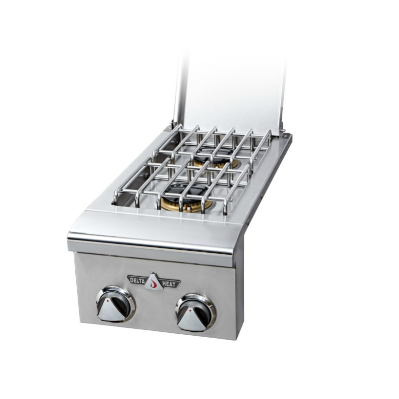 Delta Heat Double Side Burner is a great addition to your outdoor kitchen area, as it allows you to cook outside while using a grill. This double side burner has dual ring sealed burners that will allow you to boil and stir-fry, sauté or simmer simultaneously. In addition, this burner is a perfect compliant to your grill as it allows you to cook and grill beside one another.