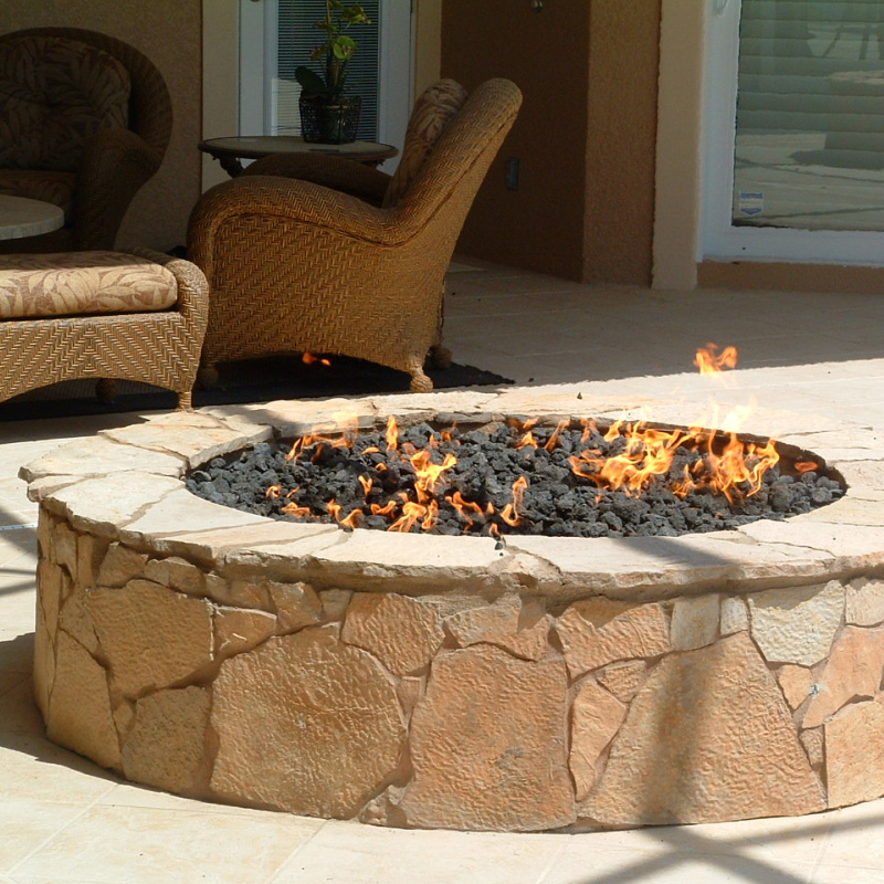 HPC’s Electronic Round Penta Burner Firepit Insert Series comes in a 13″, 19″, 25″, 31″, 37″, or 43″ pan. First, choose your size and the enclosure – or fire pit shell, which contains the fire pit insert. This enclosure can be round, square, rectangular, or linear in shape. The second step is deciding how you want to light your fire pit. The technology you select to light and control your firepit is probably the most important decision you’ll make. Match lit is the simplest technology. Using a match, you light the fire and manually control the gas feed to adjust the flame height. Another option is certified push button spark flame sensing ignition—the perfect option for fire pits without electricity. Battery push button to spark and manually adjust the flame height. Flame sensing technology automatically turns off the gas should the flame blow out. Electric ignition flame sensing technology operates remotely via a wall switch or remote controller. Electric ignition has high and low flame control with flame sensing technology that will relight should the flame blow out.
