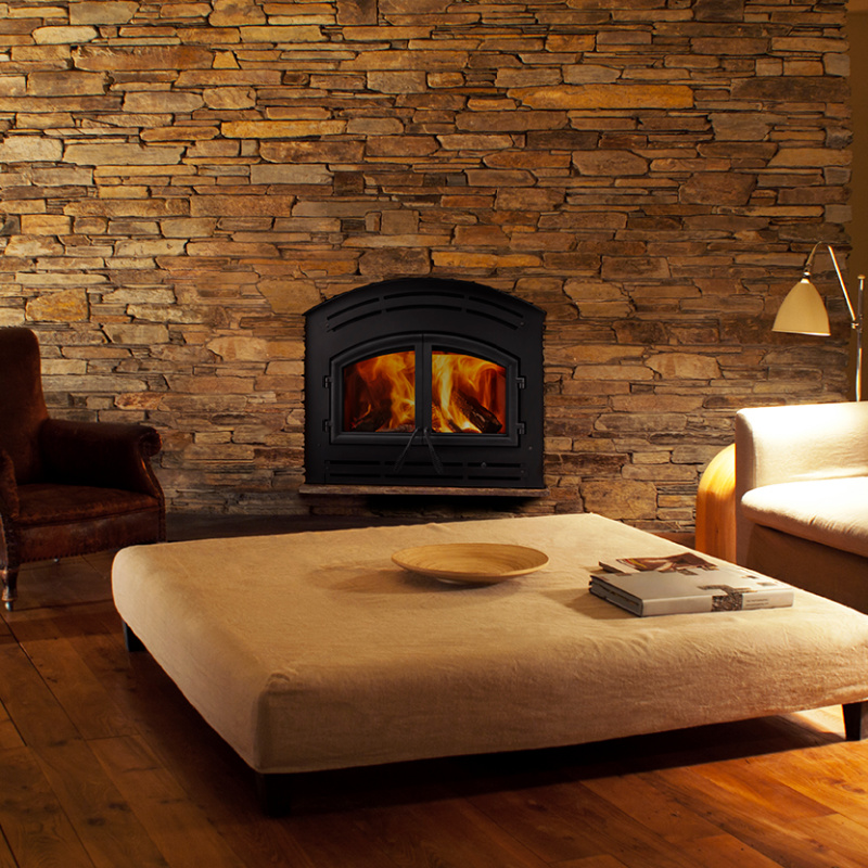 - Clean face design enables finishing materials to be applied up to firebox opening.